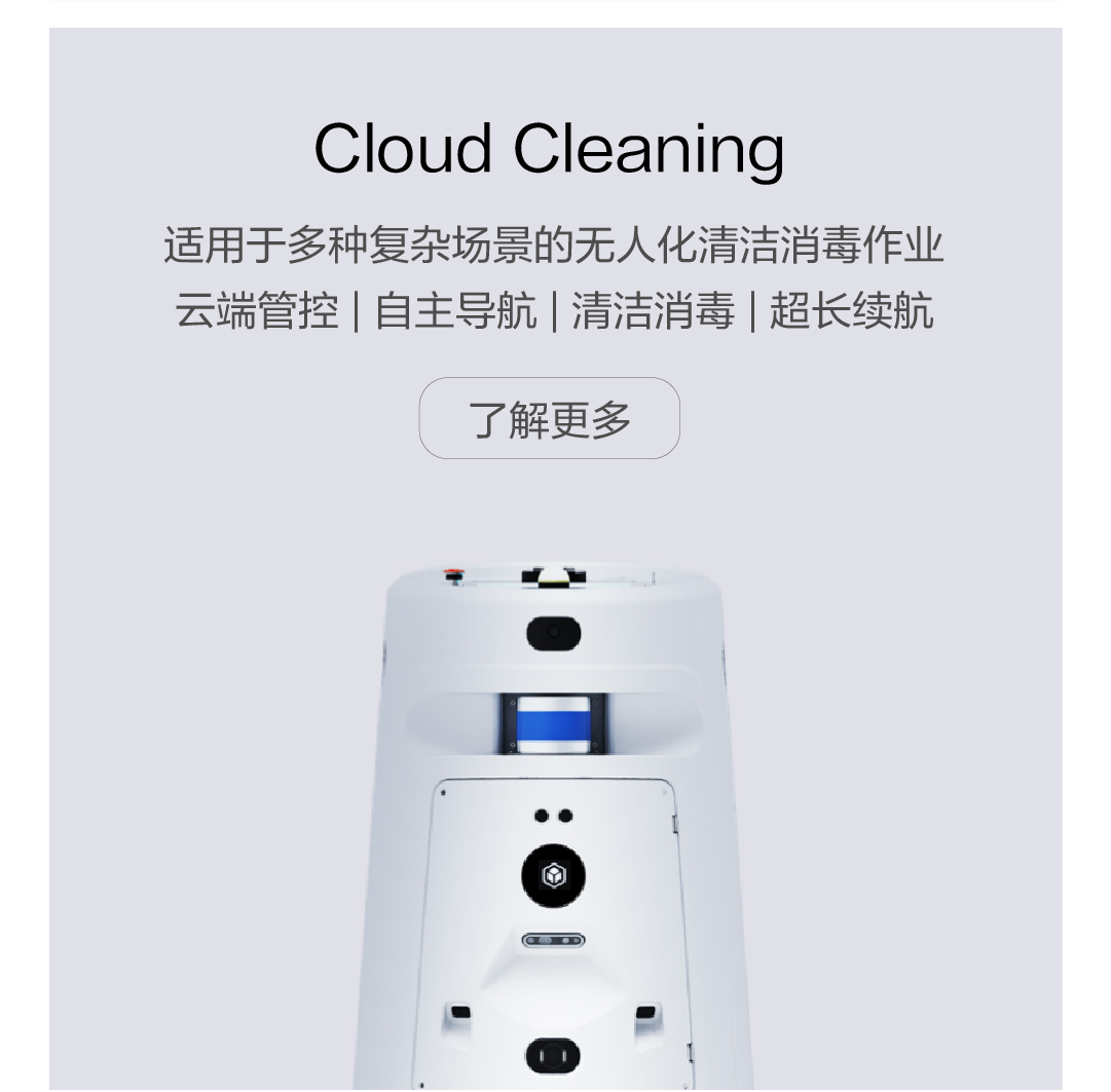 適用于多種復雜場景的無人化清潔消毒作業 云端管控 | 自主導航 | 清潔消毒 | 超長續航 了解更多